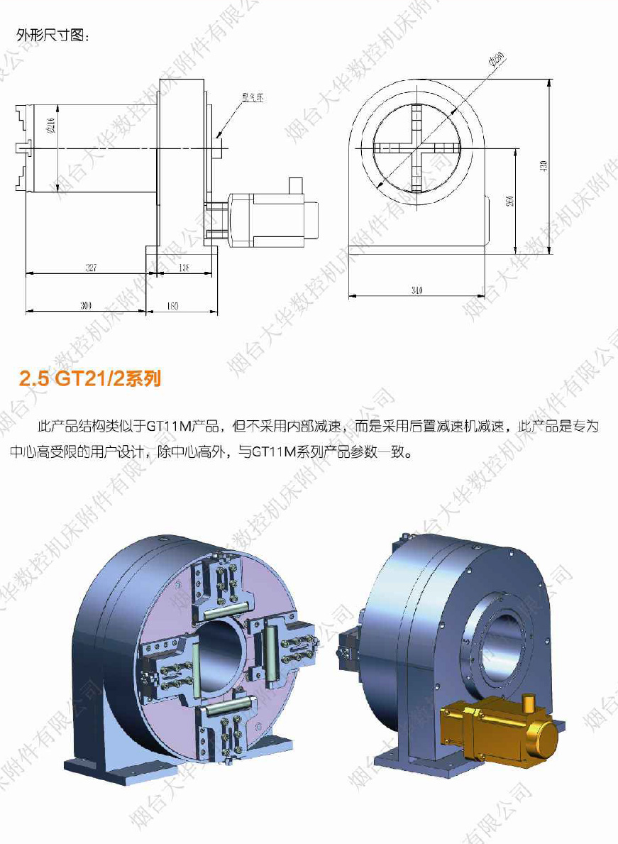 此產品為后置激光管切割轉臺,通配160、220及320型前置大通孔轉臺,此轉臺除具備GT11部分優點以外,還具有以下特點: