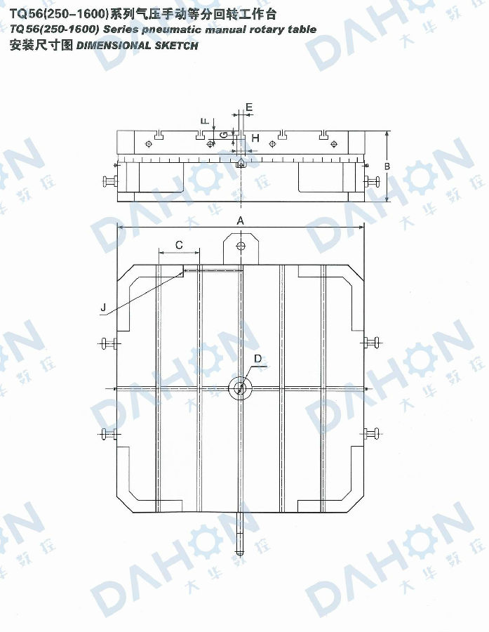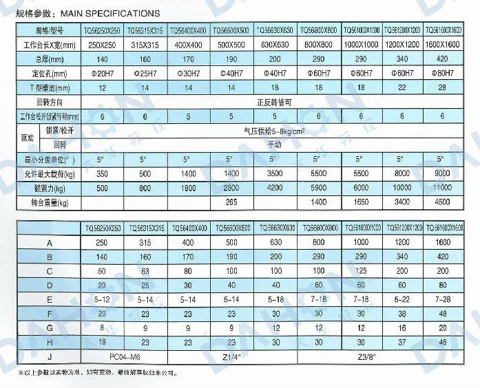 • 產品名稱: TQ56(250-2000)系列氣壓手動等分回轉工作臺